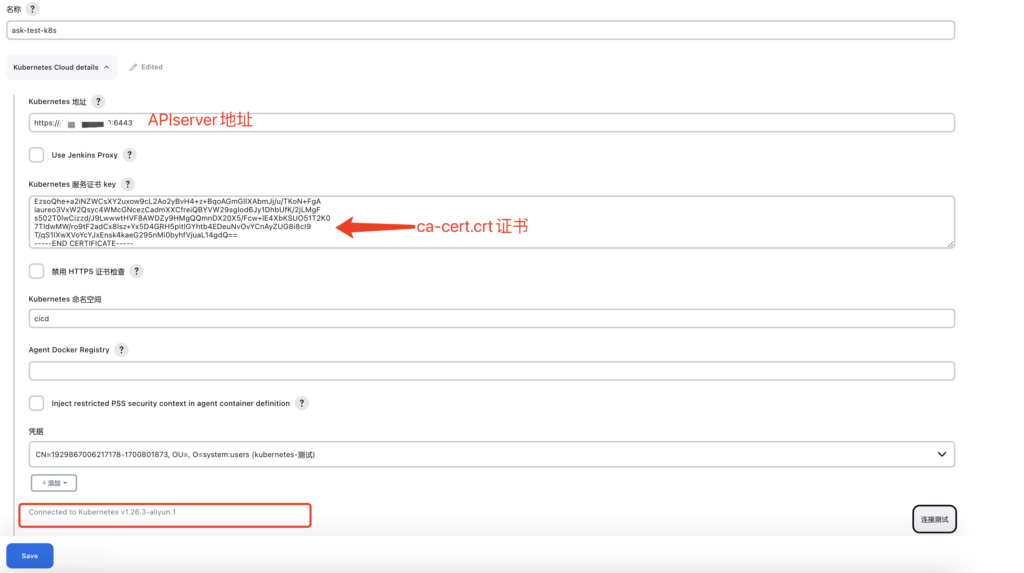 Kubernetes服务证书key是用来与Kubernetes API server建立连接的,生成方法是,从Kubernetes API server的/root/.kube/config文件中,获取/root/.kube/config中certificate-authority-data的内容,并转化成base64编码的文件即可。