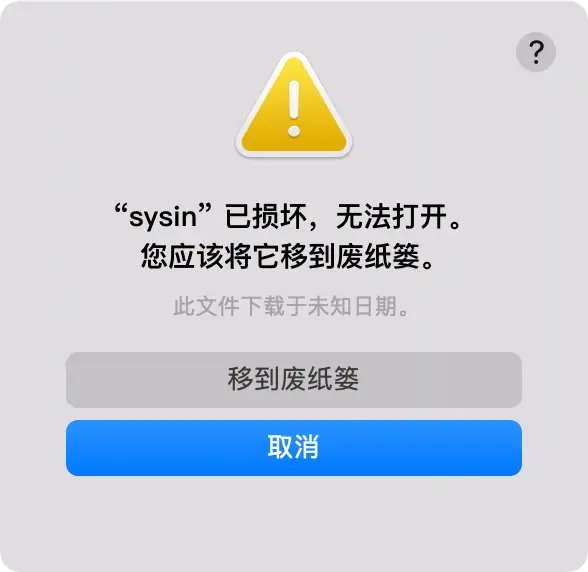 - 提示:“应用程序” 已损坏,无法打开。您应该将它移到废纸篓。