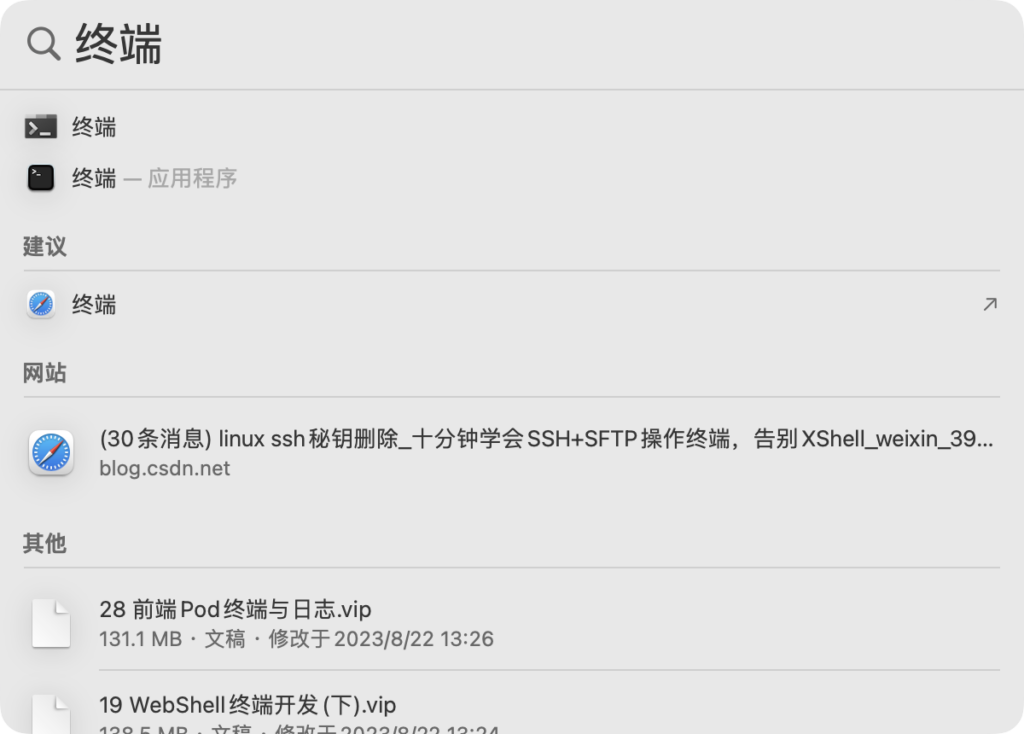 - command+空格调出终端
