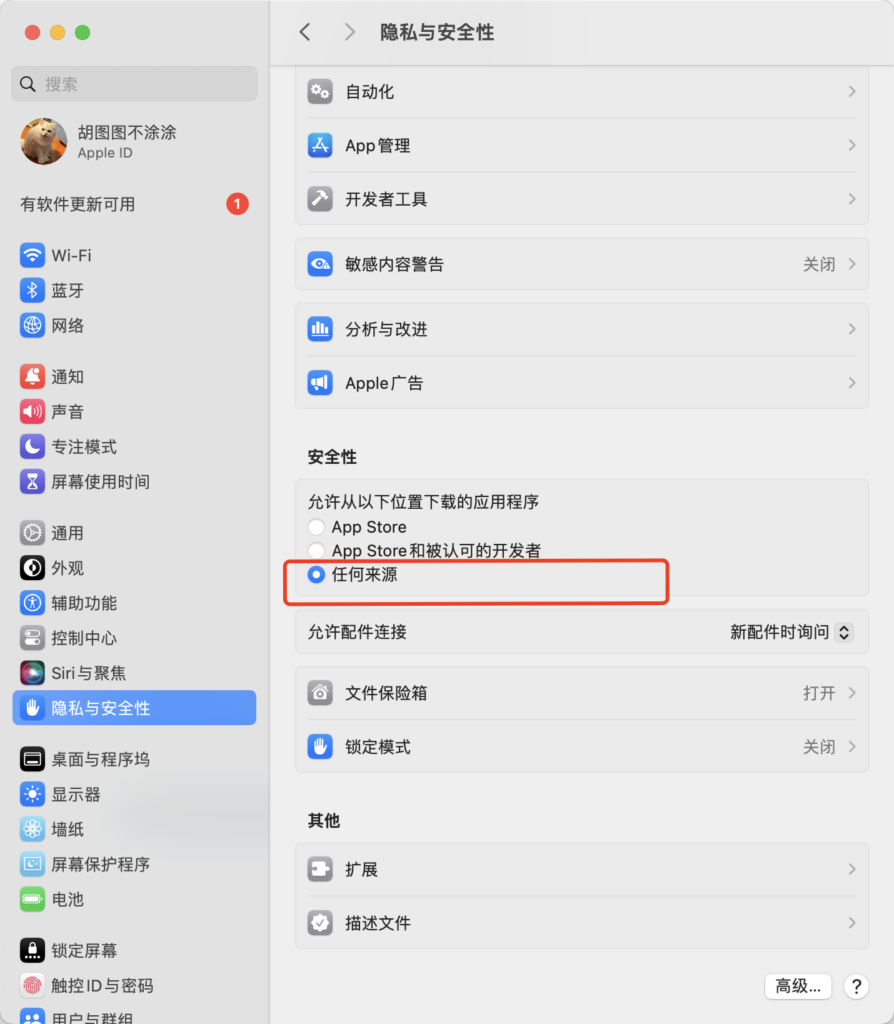 允许 “任何来源” 下载的 App 运行