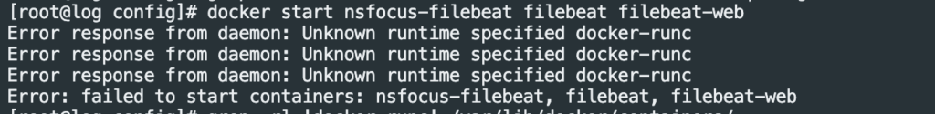 [root@log config]# docker start nsfocus-filebeat filebeat filebeat-web