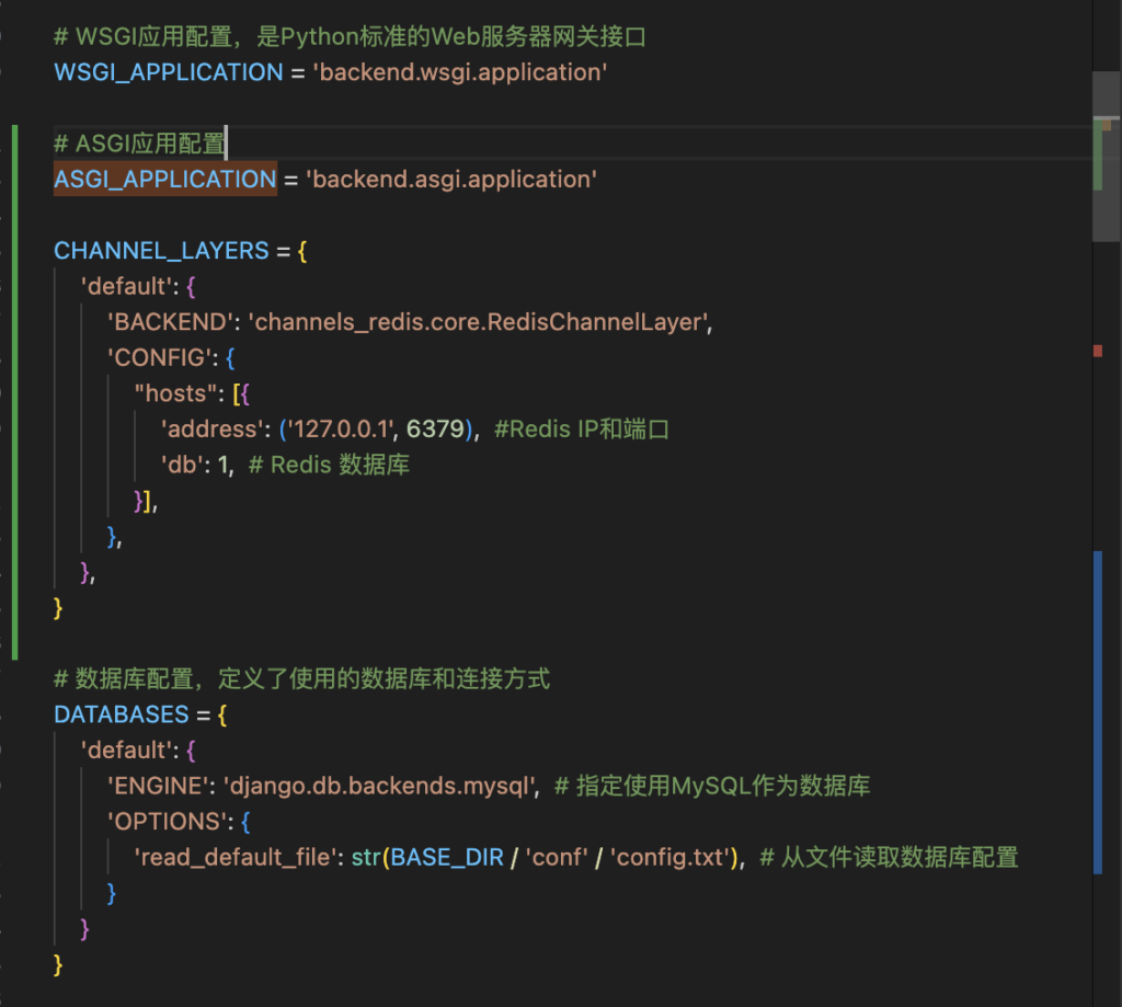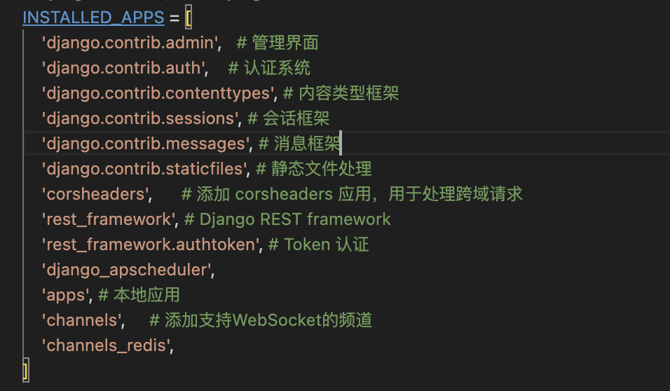- ❗注意 ‘daphne’, 必须在channels和django.contrib.staticfiles’的上面位置