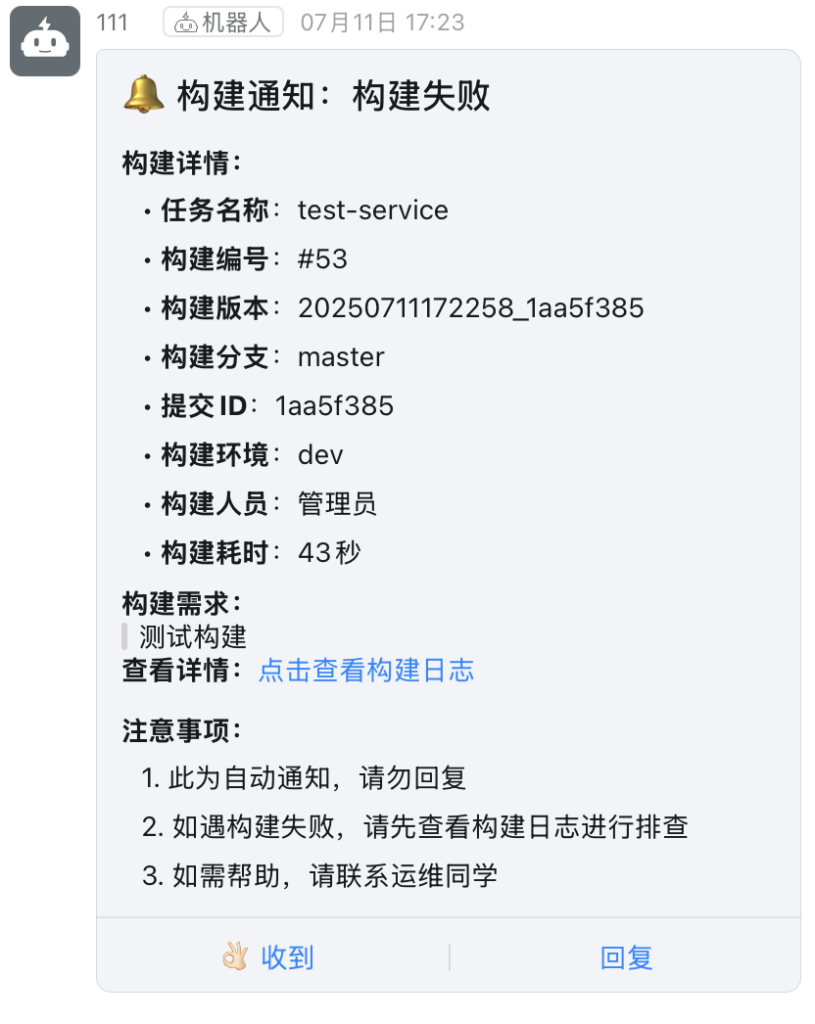 - 提供清晰的构建状态和日志,出问题能快速定位